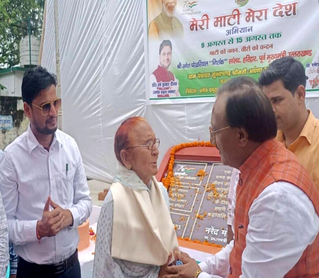 क्राईम स्टोरी न्यूज़ हरिद्वार। पूर्व सीएम और सांसद डॉ. रमेश पोखरियाल निशंक ने शनिवार को सुभाषगढ़, ऐथल बुजुर्ग तथा दाबकी कलां में ‘मेरी माटी मेरा देश कार्यक्रम में प्रतिभाग कर पौधरोपण किया। डॉ. निशंक ने कार्यक्रम में वीरों का वन्दन किया तथा स्वतंत्रता सेनानी, शहीदों व अन्य के परिवारों को सम्मानित किया। उन्होंने बताया कि कार्यक्रम का समापन समारोह नई दिल्ली के कर्तव्य पथ पर 27 से 30 अगस्त तक आयोजित किया जाएगा। जिसमें प्रत्येक राज्य से लाई गयी मिट्टी से विशेष वाटिका (अमृत वाटिका) का निर्माण किया जाएगा। कार्यक्रम के तहत पौधरोपण भी किया गया। इस मौके पर भाजपा के पूर्व जिलाध्यक्ष डॉ. जयपाल सिंह, डीपीआरओ अतुल प्रताप सिंह, खंड विकास अधिकारी लक्सर पवन सिंह सैनी आदि शामिल रहे।