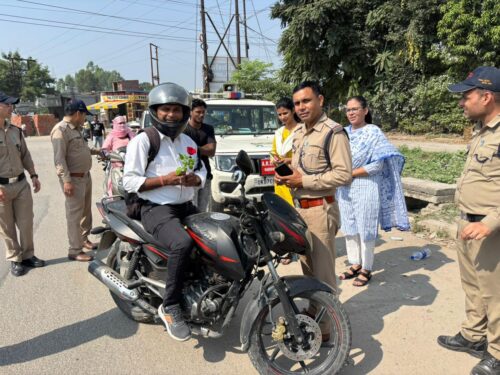 परिवहन टीम द्वारा फूल तथा चॉकलेट देकर प्रोत्साहित किया गया।इस अभियान में सहायक परिवहन अधिकारी नेहा झा,परिवहन कर अधिकारी अरुणा सैनी,सहायक परिवहन उप निरीक्षक अश्वनी कुमार,सहायक परिवहन निरीक्षक सुरवीर कण्डवाल शामिल रहे।