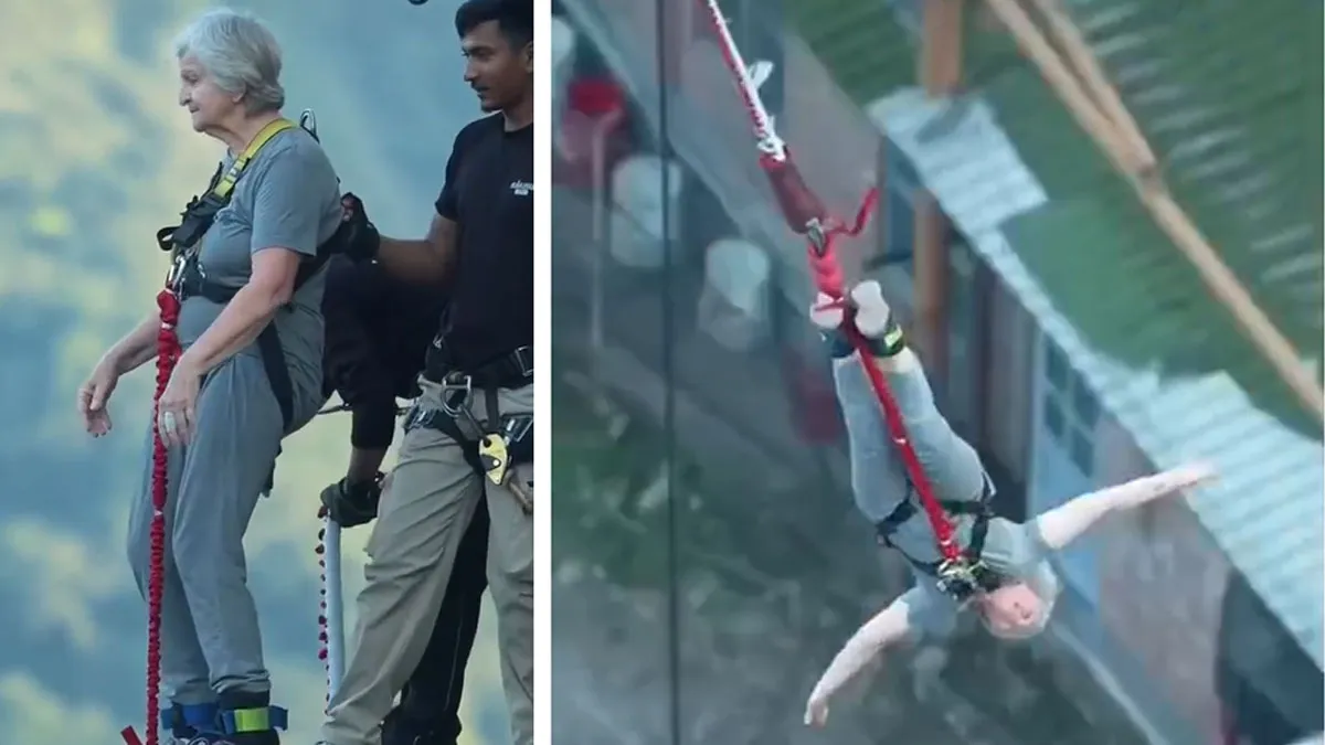 क्राईम स्टोरी न्यूज़ ऋषिकेश। ब्रिटेन की 83 वर्षीय महिला ने ऋषिकेश में बंजी जंपिंग की। उन्होंने 117 मीटर की ऊंचाई से कूदकर सबको हैरत में डाला दिया है। महिला का यह वीडियो सोशल मीडिया पर खूब वायरल हो रहा है और लोग उनके साहसी जज्बे की तारीफ कर रहे हैं। उक्त वीडियो 13 अक्टूबर का बताया