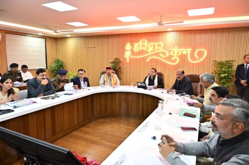 कार्मिकों की तैनाती सुनिश्चित करने को कहा। बैठक में कैबिनेट मंत्री सतपाल महाराज, सुबोध उनियाल तथा पूर्व मुख्यमंत्री एवं सांसद त्रिवेन्द्र सिंह रावत ने भी प्रतिभाग करते हुए अपने सुझाव दिए। इस दौरान मेलाधिकारी सोनिका, सचिव, शहरी विकास विभाग नितेश कुमार झा; सचिव, लोक निर्माण विभाग पंकज कुमार पाण्डे; आयुक्त, गढ़वाल मंडल विनय शंकर पाण्डेय; सचिव, पेयजल रणवीर सिंह चौहान; सचिव, सिंचाई युगल किशोर पंत; सचिव, पर्यटन धीराज गर्ब्याल; अपर पुलिस महानिदेशक ए.पी. अंशुमान, तथा उत्तर रेलवे के मुरादाबाद मंडल की डीआरएम विनीता श्रीवास्तव सहित अन्य वरिष्ठ अधिकारियों ने मेले की तैयारियों की विस्तृत जानकारी दी। बैठक में मेयर हरिद्वार किरन जैसल, मेयर रुड़की अनीता अग्रवाल, मेयर ऋषिकेश शंभू पासवान, विधायक रानीपुर आदेश चौहान, विधायक रुड़की प्रदीप बत्रा, विधायक हरिद्वार ग्रामीण अनुपमा रावत, विधायक ज्वालापुर रवि बहादुर; दायित्वधारी अजीत चौधरी, जयपाल सिंह चौहान, देशराज कर्णवाल, शोभाराम प्रजापति; पूर्व मंत्री एवं प्रदेश उपाध्यक्ष स्वामी यतीश्वरानंद; जिलाध्यक्ष भाजपा हरिद्वार आशुतोष शर्मा, जिलाध्यक्ष रुड़की डॉ. मधु; पुलिस महानिरीक्षक गढ़वाल राजीव स्वरूप; सचिव सी. रविशंकर, आनंद स्वरूप; जिलाधिकारी मयूर दीक्षित; वरिष्ठ पुलिस अधीक्षक नवनीत सिंह भुल्लर; मुख्य विकास अधिकारी ललित नारायण मिश्रा; अपर जिलाधिकारी पी.आर. चौहान; अपर मेलाधिकारी सहित विभिन्न विभागों के अधिकारियों ने प्रतिभाग किया।